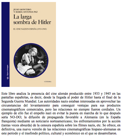 La larga sombra de Hitler. El cine nazi en España (1933-1945) Autor/es: Montero-Díaz, Julio; Paz-Rebollo, María Antonia Año: 2009