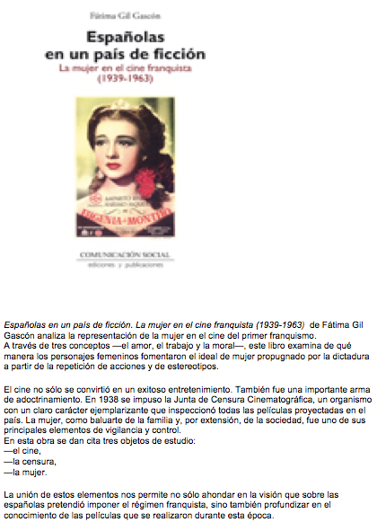 Españolas en un país de ficción. La mujer en el cine franquista (1939-1963) Autor/es: Gil Gascón, Fátima Año: 2011